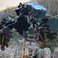 I found these cute little leaves a neat way of helping us all (adults and children) reflect and be thankful. They were also fun to scratch/draw on and made nice thematic decorations for the holiday dinner. (I bought mine from Oriental Trading you can find them here.)
