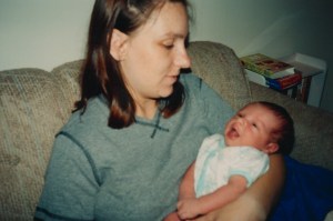 This is me. Me with the first baby that made me a momma. By no means was he the last, there were many more to come. But that first baby holds a special place in my memories. It was the first time (of probably millions) when I was on the verge of the most obvious thing that I never saw coming: